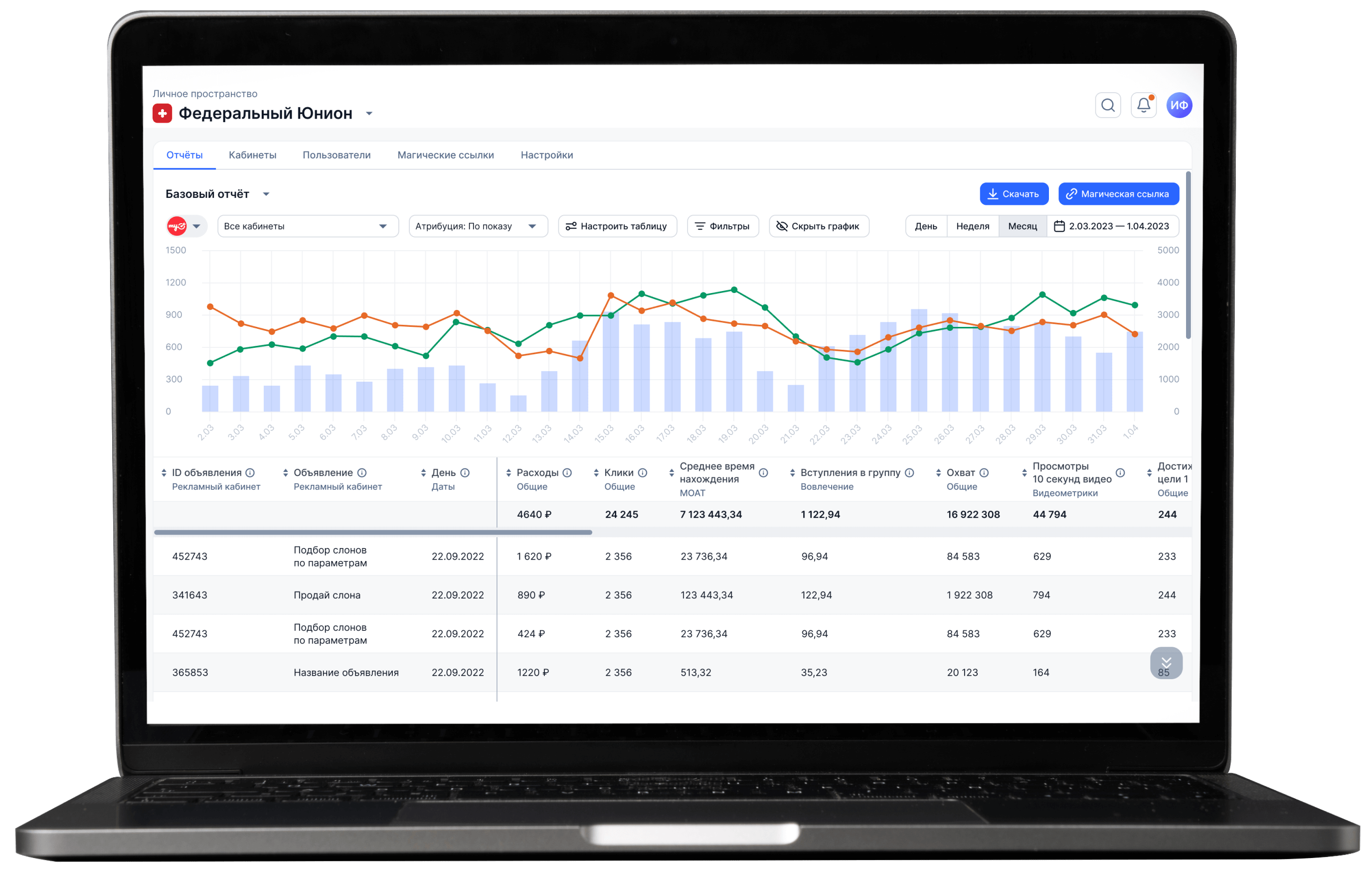 в два клика отдавать клиентам данные по отдельным кампаниям.